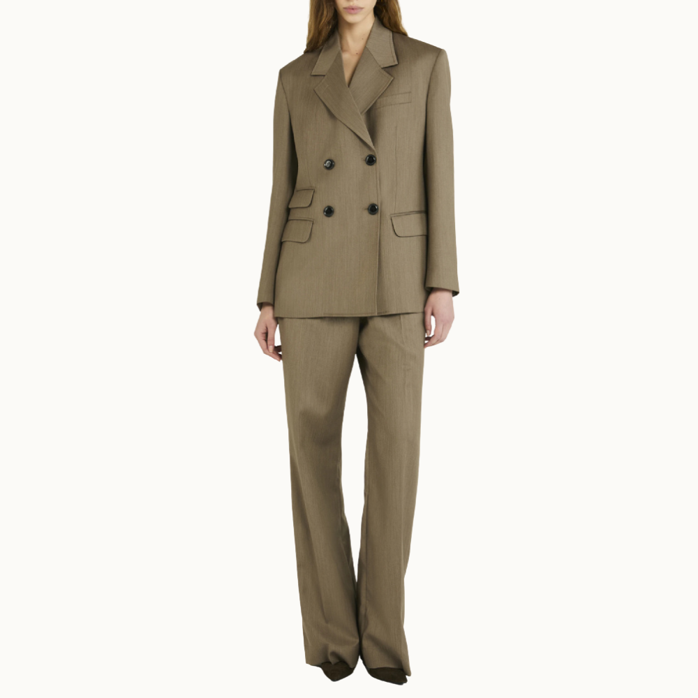 Tecido: 100% Lã Forro: 60% Acetato 40% Viscose.