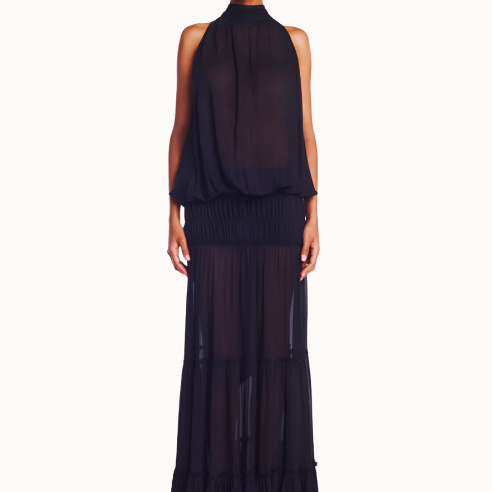 BLUSA GOLA ALTA SEM MANGA ELÁSTICO BARRA GEORGETE