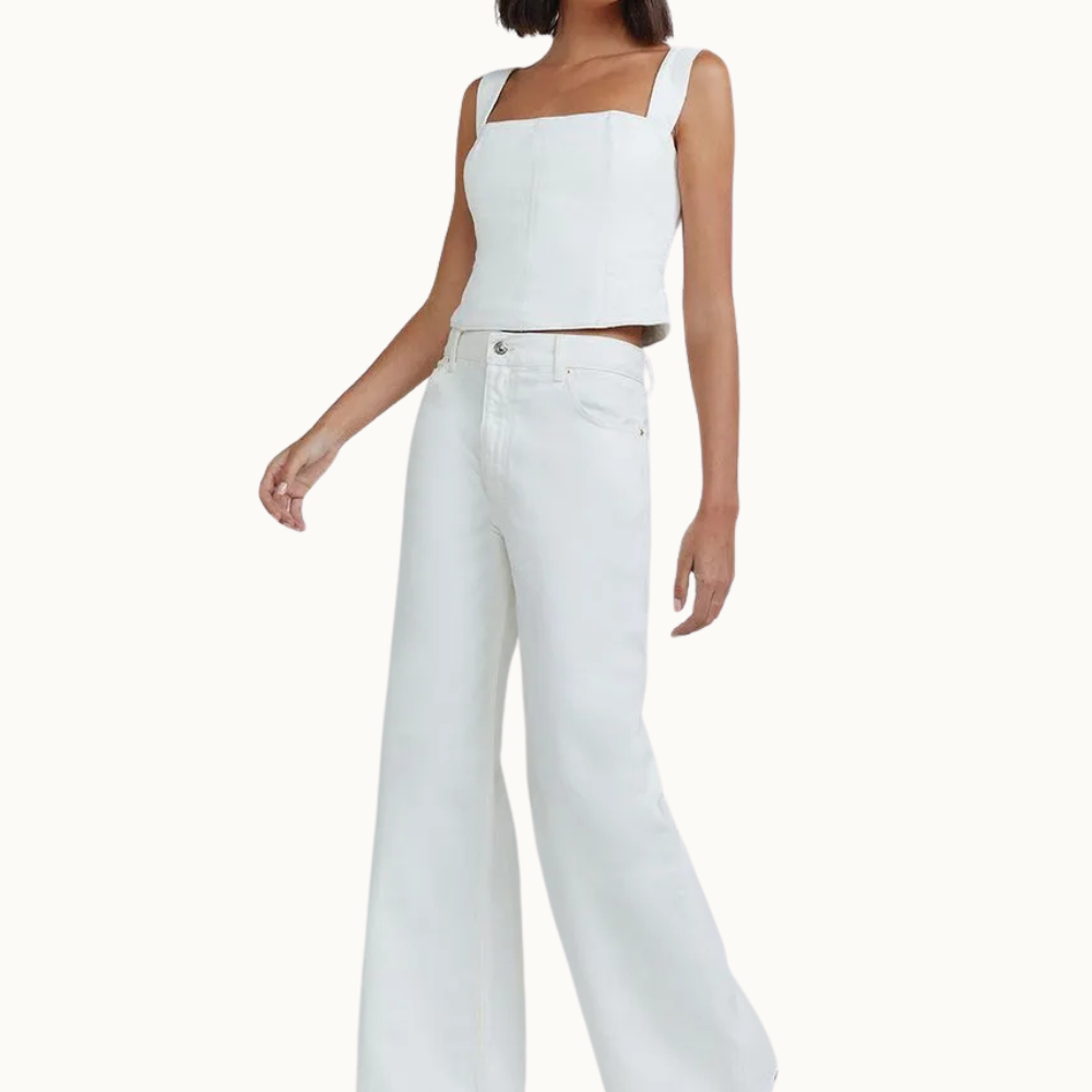 Top confeccionado em jeans com modelagem regular e comprimento tradicional. Possui alças largas, decote reto, barra arredondada e fechamento com zíper nas costas. Com lavagem exclusiva e estrutura marcante, é a escolha ideal para composições modernas e femininas.