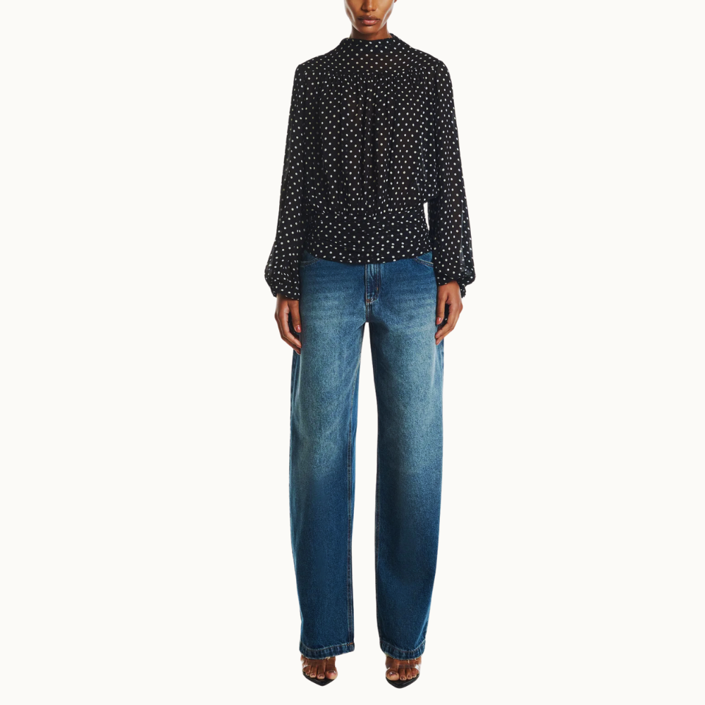 BLUSA MANGA LONGA PALA CINTURA DRAPEADA GEORGETE POÁ