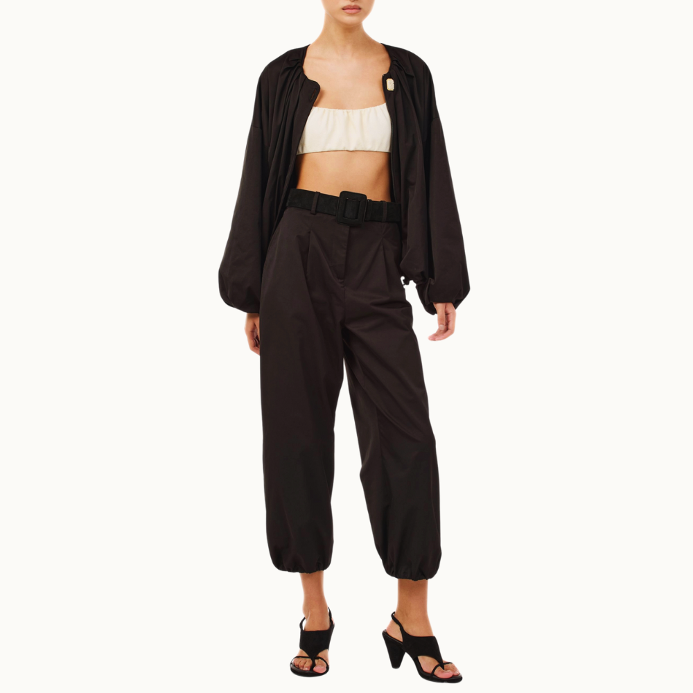 A calca Royale CRIS BARROS é fun e estilosa. De Lina, tecido misto de algodão, leve e sarjado com caimento preciso e único.calça em lina, nosso tecido de alfaiataria acetinado. Possui shape aladim com elastico na barra, cintura alta, cós com passantes e elástico posterior, bolsos funcionais laterais e posteriores de vivo, pregas frontais, comprimento no ossinho e fechamento por zíper de braguilha e ganchos de alfaiataria.
