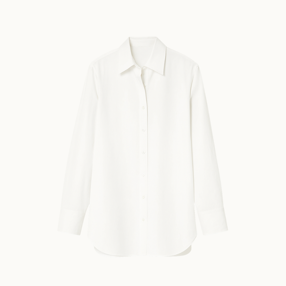Camisa em tricoline com modelagem oversized e fechamento frontal por botões.