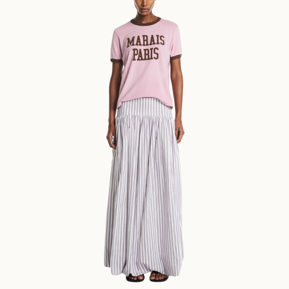 Camiseta em algodão com modelagem justa e estampa localizada. Possui decote redondo e manga curta. Não possui fechamento.