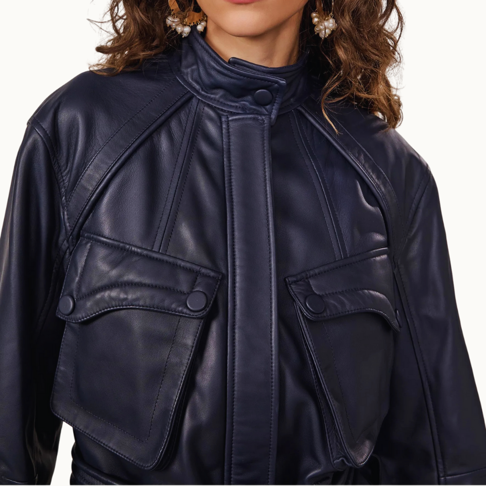 JAQUETA DE COURO FAIXA MATELASSE MARINHO