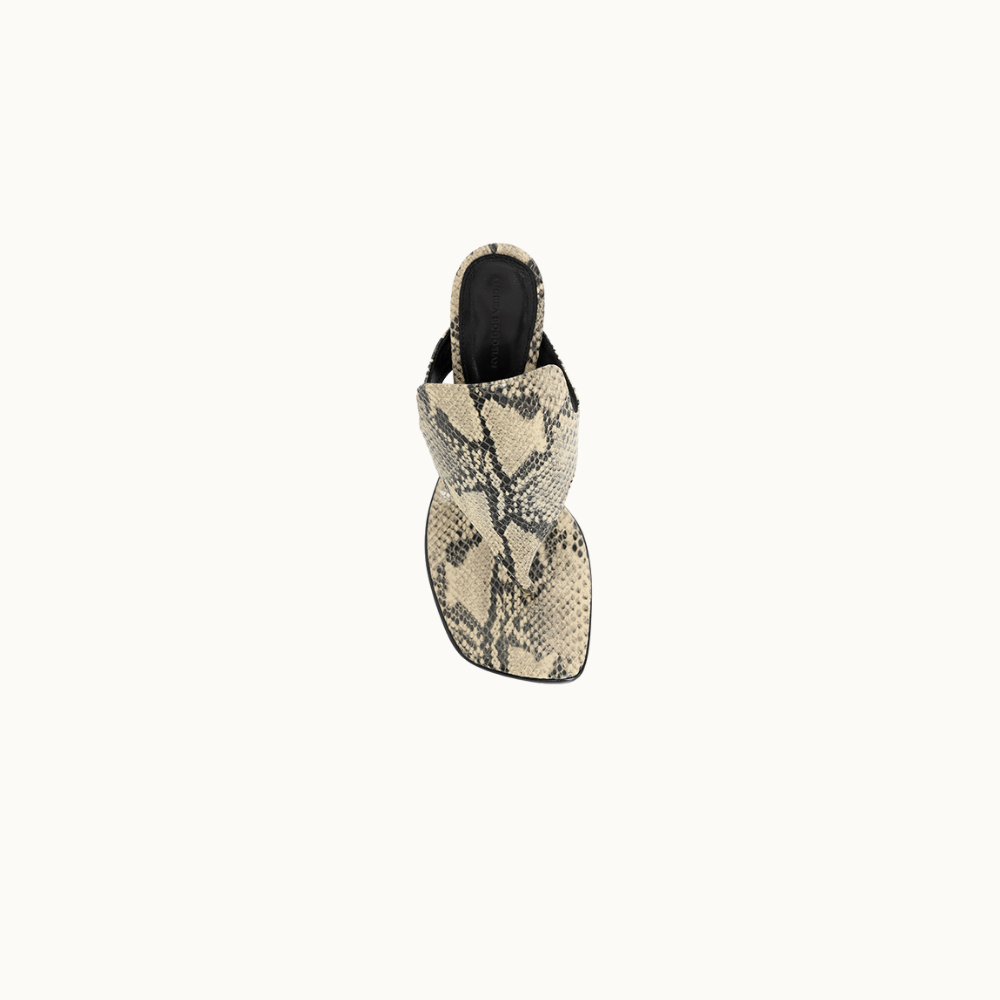 Sandália de Dedo, em Couro com Padrão de Python, Detalhe de Tira Sobreposta.