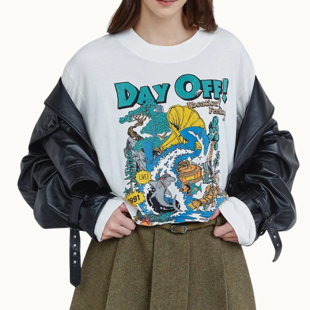 T-shirt com comprimento cropped em malha, modelagem regular e manga longa. O silk frontal imprime personalidade à peça. O decote canoa e a barra reta completam o visual com equilíbrio entre conforto e estilo casual.